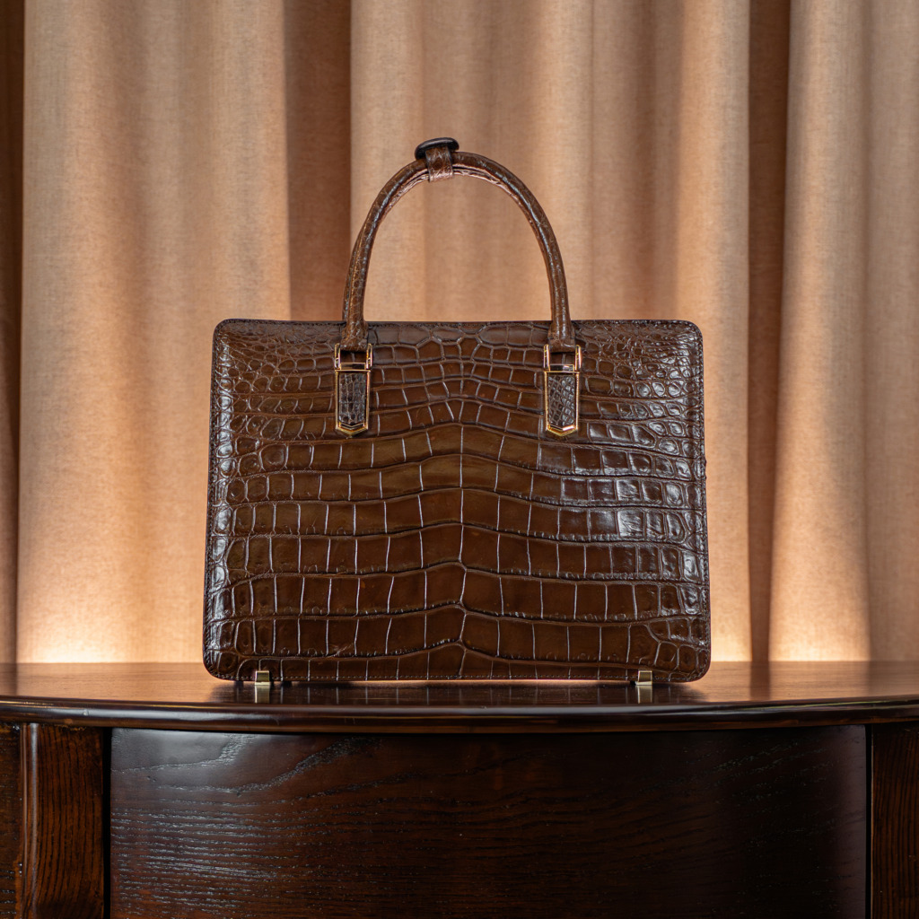 > -Standard size: > Height 27 cm, width 37 > cm, bottom depth 9 cm. > > -Structure & > compartments: > > The bag features 2 main > compartments, including > 1 compartment with a > hidden zip pocket and 1 > compartment with a > padded sleeve for a > laptop or tablet. > Additionally, there is > 1 auxiliary compartment > with 6 card slots and 1 > dedicated phone pocket. > > -Material: > > Imported Siamensis > crocodile leather. > > -Hardware: > > Optional silver or > brass metal finishes > based on preference. > > Product line: > > Part of the Modern > Emprior collection.