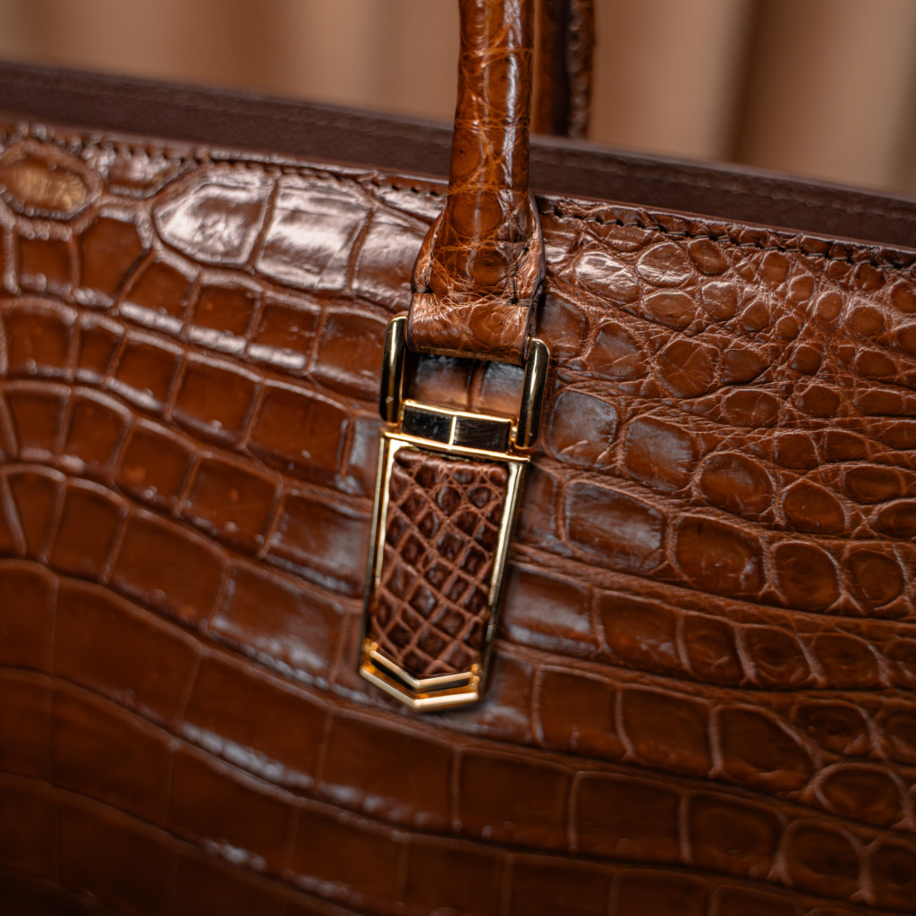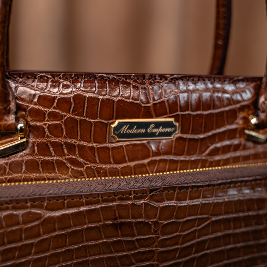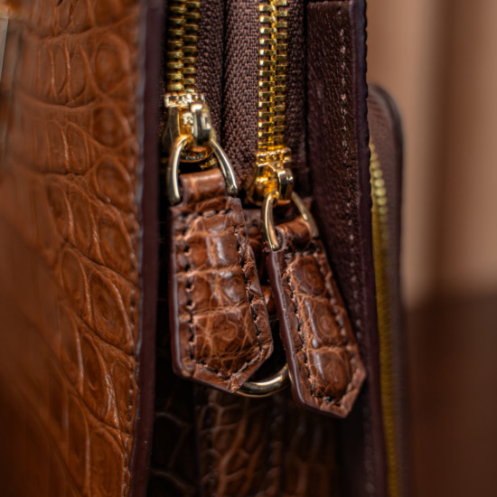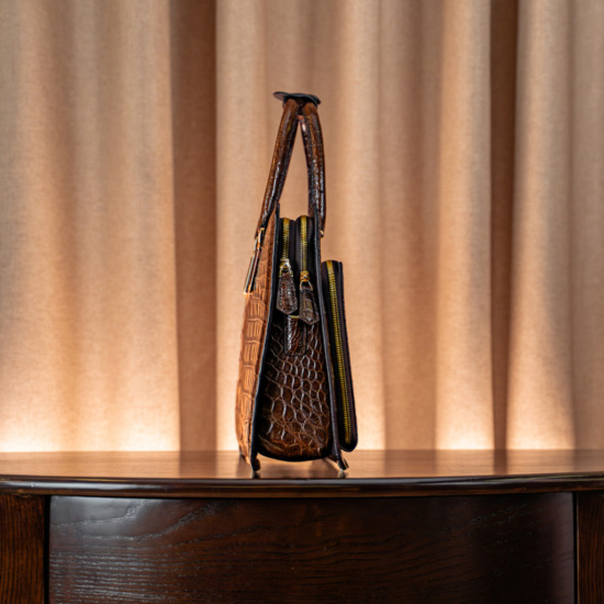 Valente Crocodile Leather Bag – Brown