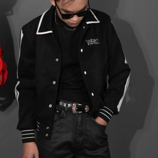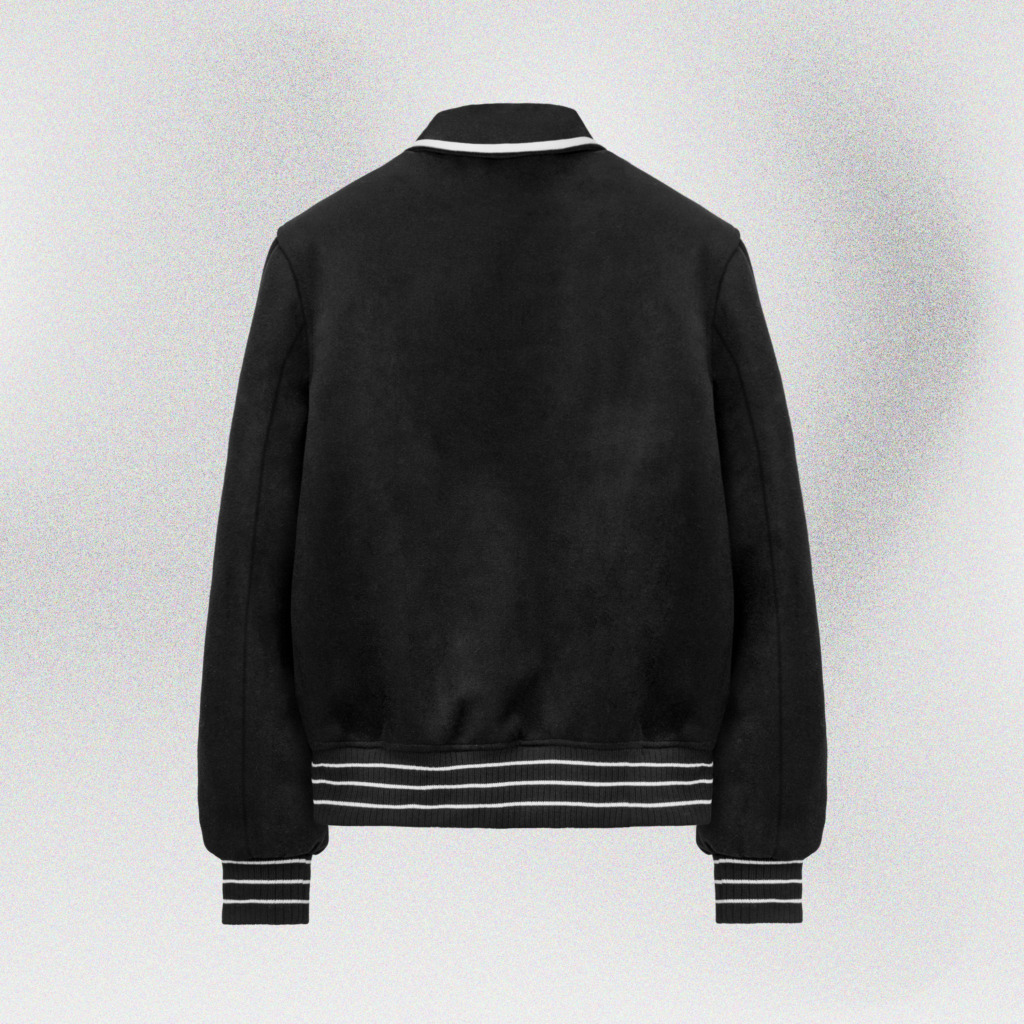 Chiếc varsity jacket màu đen mang tinh thần trẻ trung, cổ điển pha hiện đại, tạo dấu ấn mạnh mẽ ngay từ ánh nhìn đầu tiên. Sắc đen huyền bí giúp tổng thể trở nên cá tính, dễ phối và phù hợp trong mọi hoàn cảnh – từ streetwear năng động đến phong cách tối giản hiện đại.
