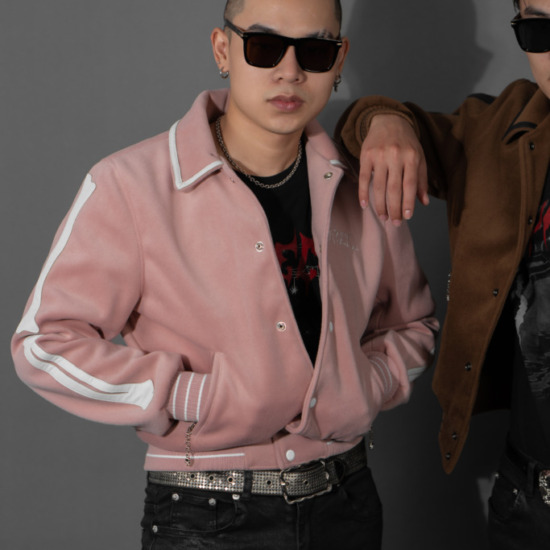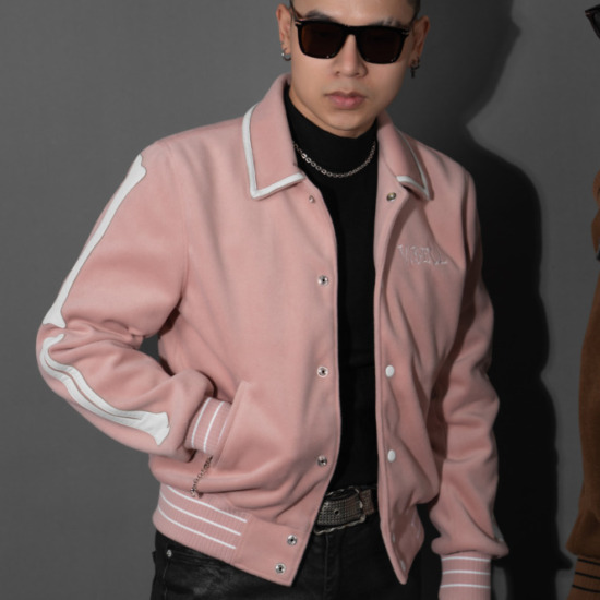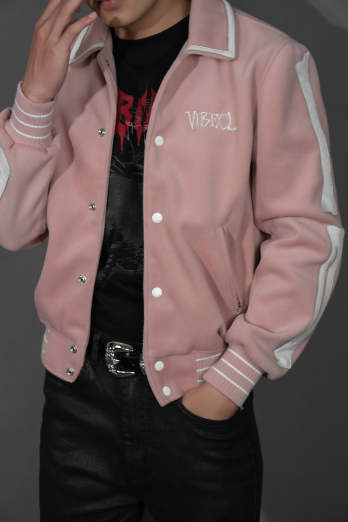 Gam hồng trầm mang sắc thái tinh tế, khác biệt nhưng vẫn dễ ứng dụng. Sự pha trộn giữa tinh thần varsity cổ điển và màu sắc hiện đại tạo nên một thiết kế vừa mềm mại vừa cá tính – phù hợp cho cả phong cách street lẫn smart-casual trẻ trung.