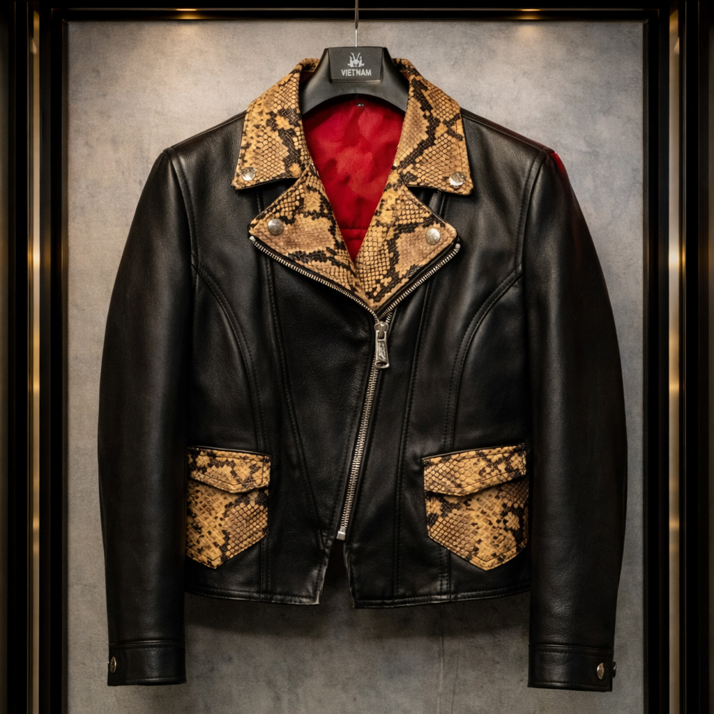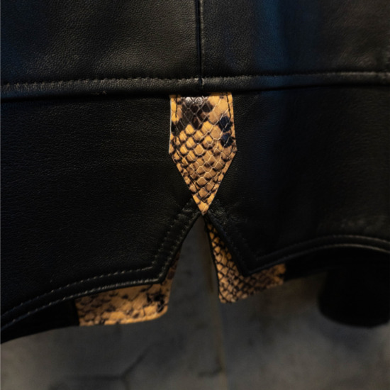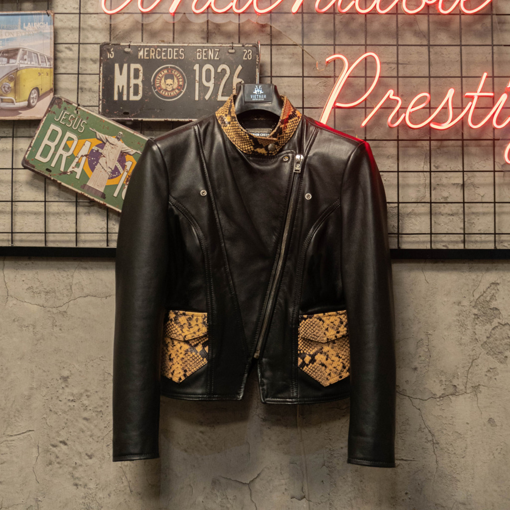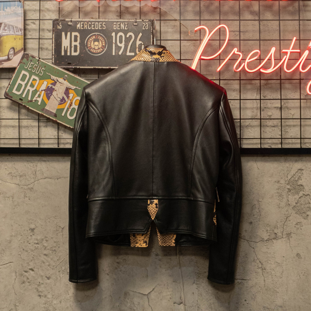 Một thiết kế racer leather dành riêng cho phái nữ, tập trung vào phom dáng ôm gọn, chiết eo tinh tế và tinh thần mạnh mẽ đặc trưng của V.C.L.