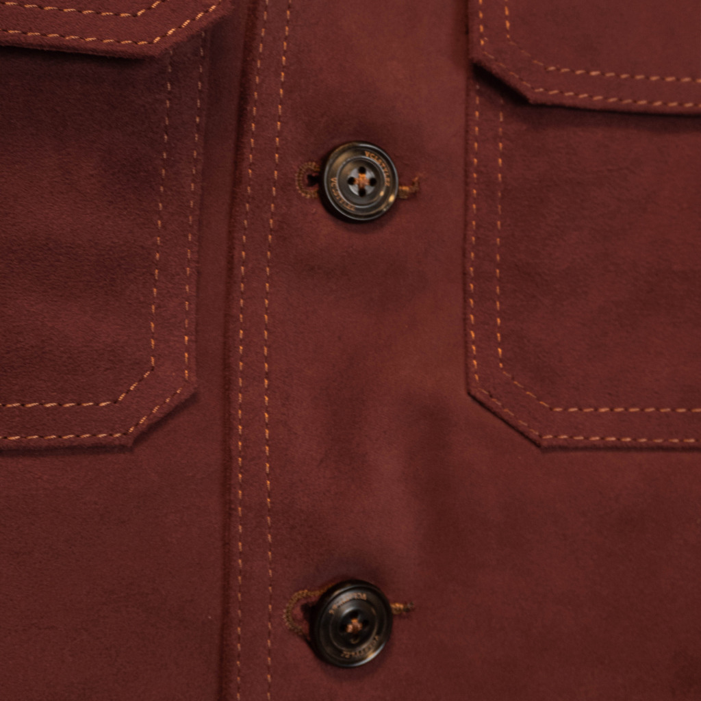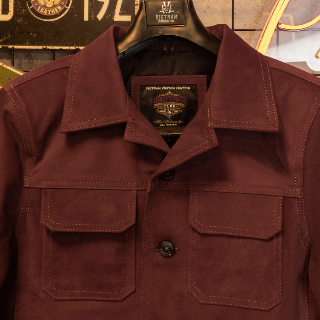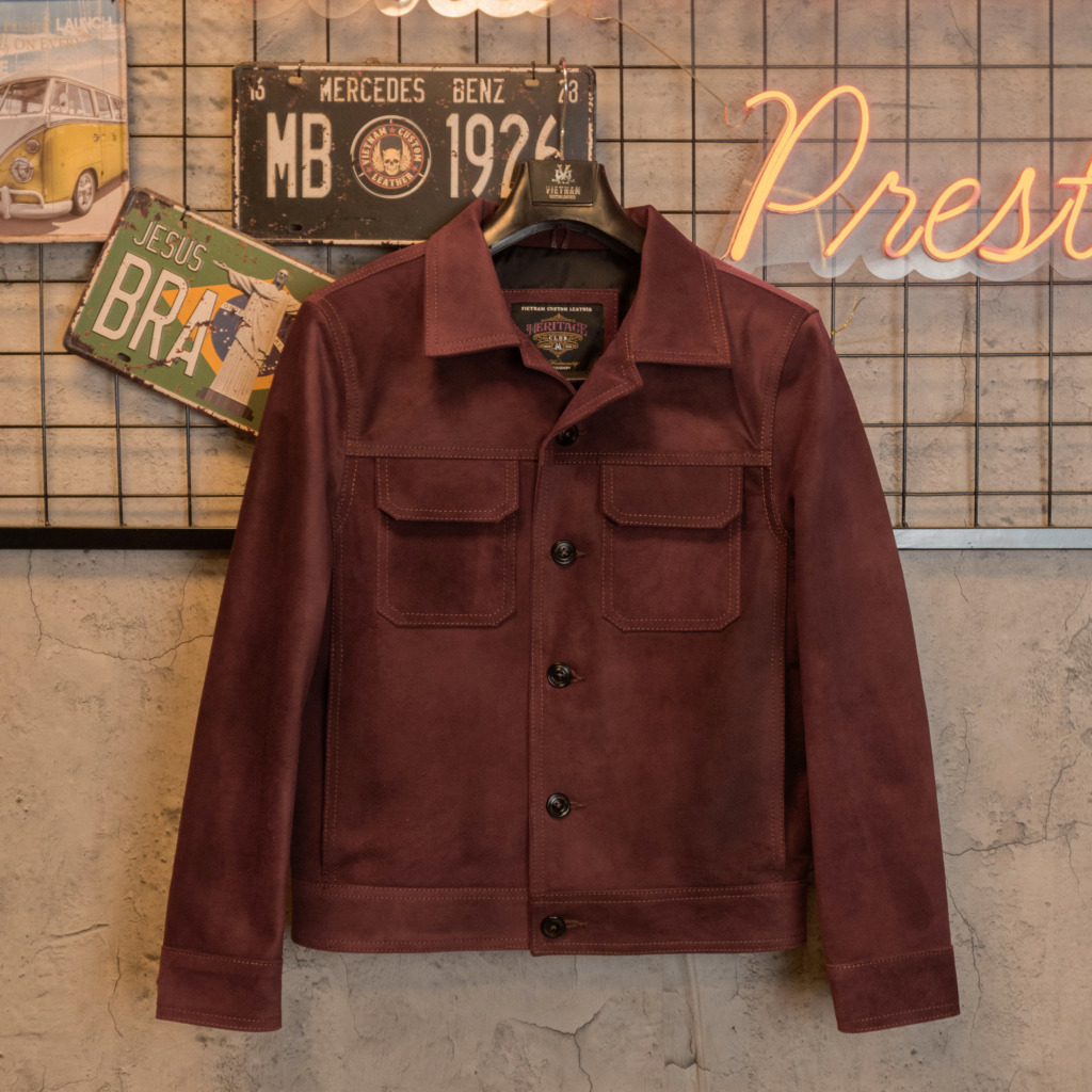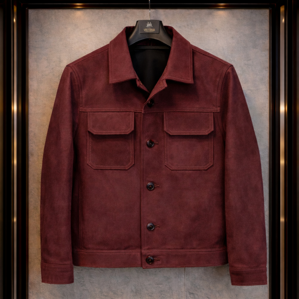 Rough Out Calfskin Americana Blouson Jacket là sự tôn vinh tinh thần Americana cổ điển, nơi chất liệu thô mộc và phom dáng chuẩn mực tạo nên vẻ đẹp bền bỉ theo thời gian.